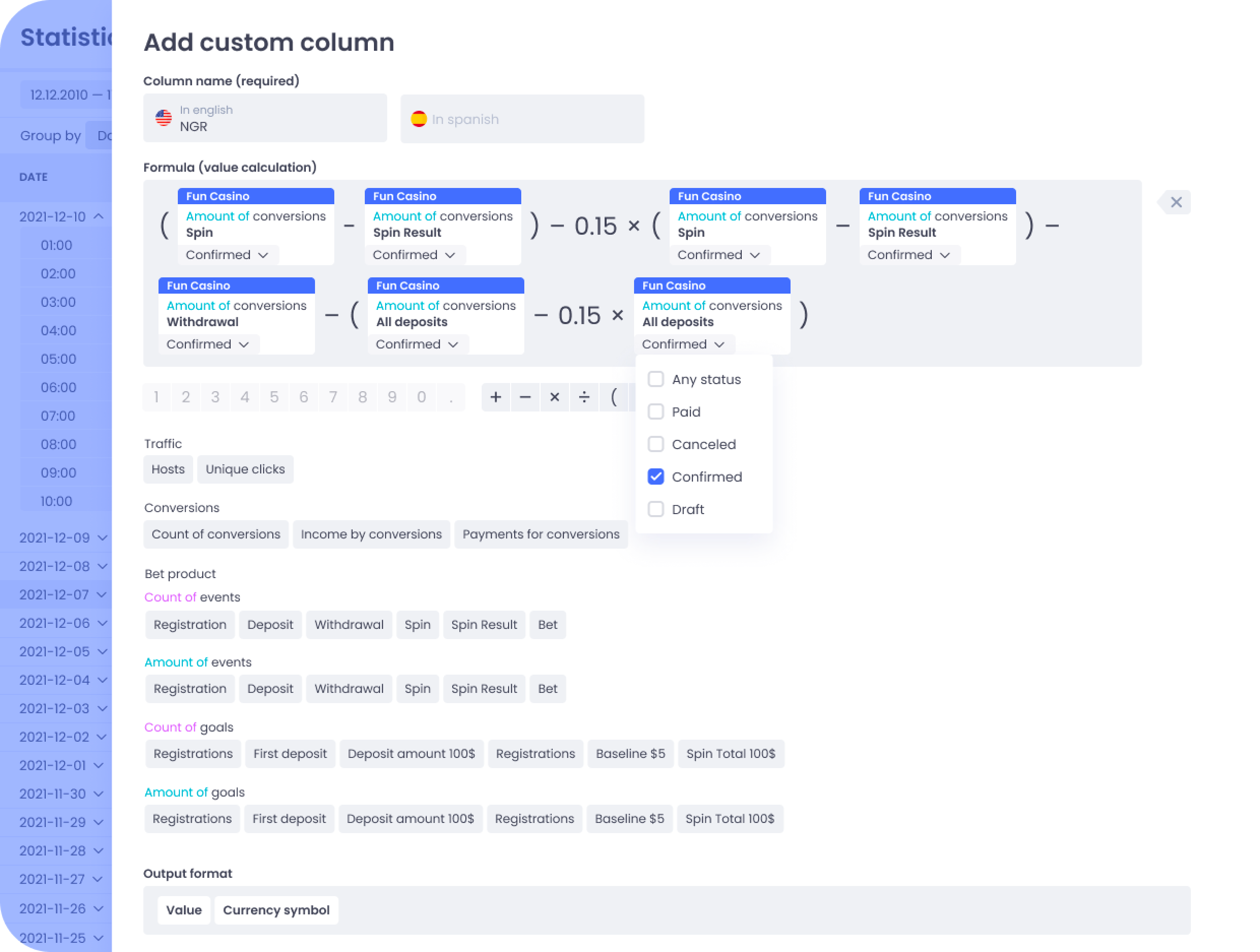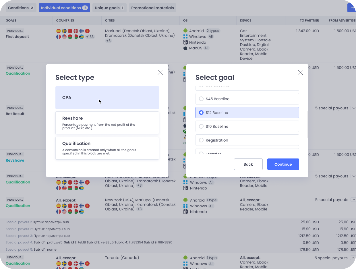 In Alanbase, you have access to all payment models: CPA, Revshare, Hybrid. But that's not all! Assess the desired model with custom qualifications for payments according to your own formula.